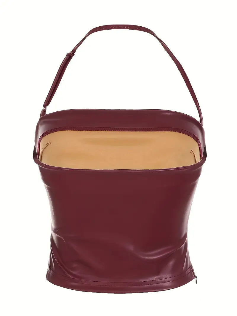 Atrévete a destacar con nuestro Top efecto cuero burdeos, la pieza que combina fuerza, sensualidad y elegancia en un solo diseño.
